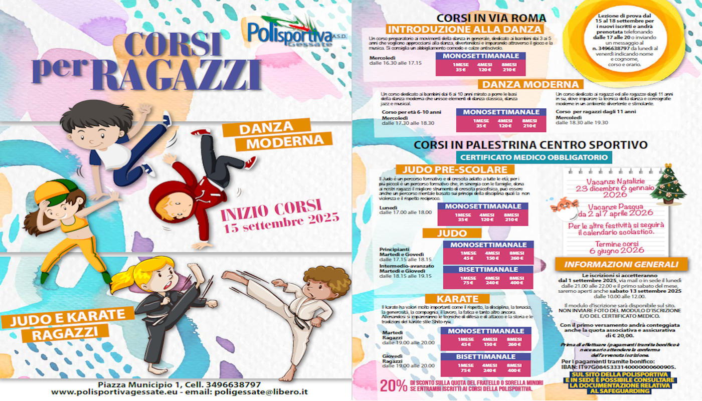 La Polisportiva Gessate A.S.D è una libera associazione apartitica, senza scopi di lucro